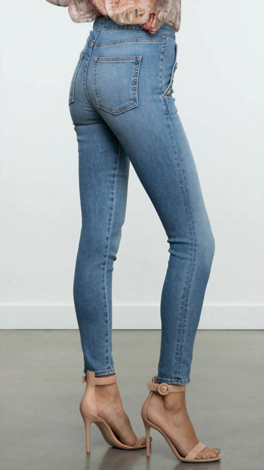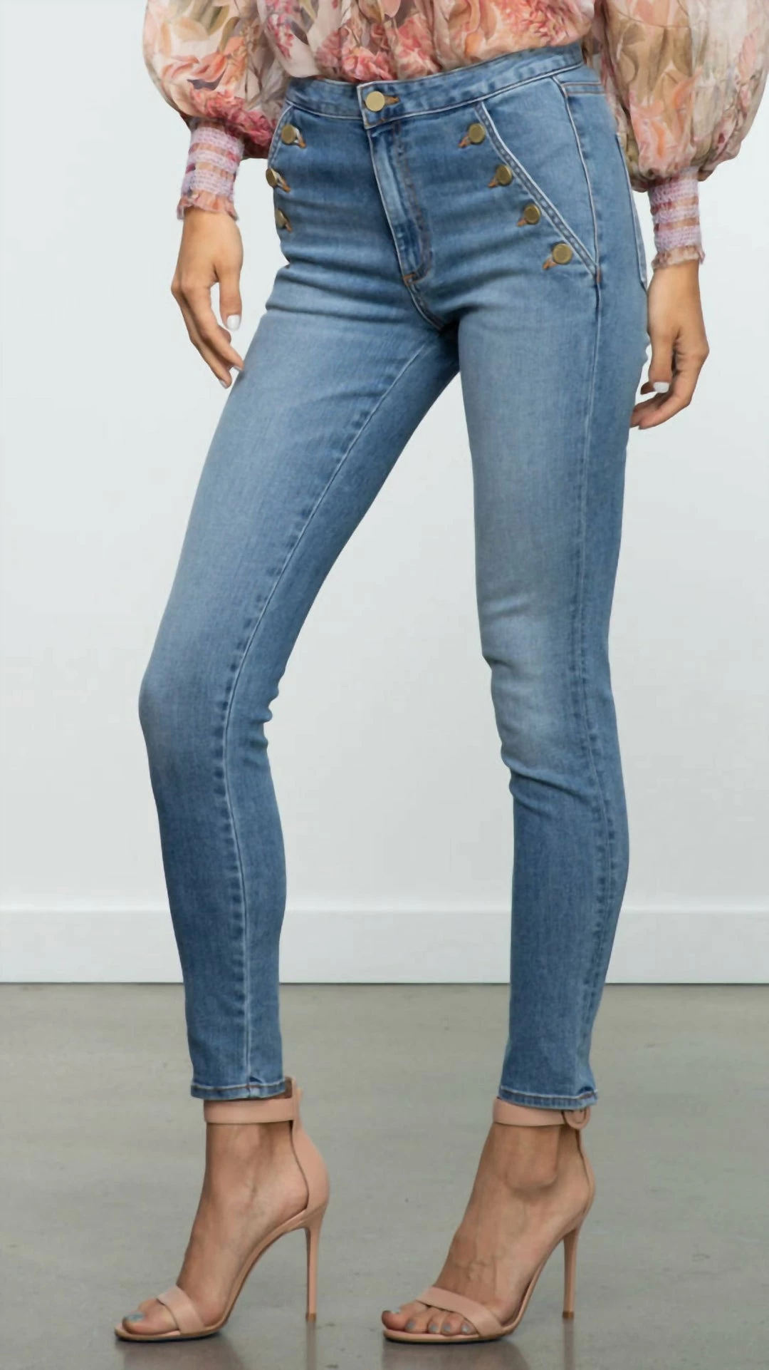 High-rise, skinny jeans in light washBack patch pockets, cropped above ankles28″ inseamDry clean onlyModel is 5’11”, wearing size 24