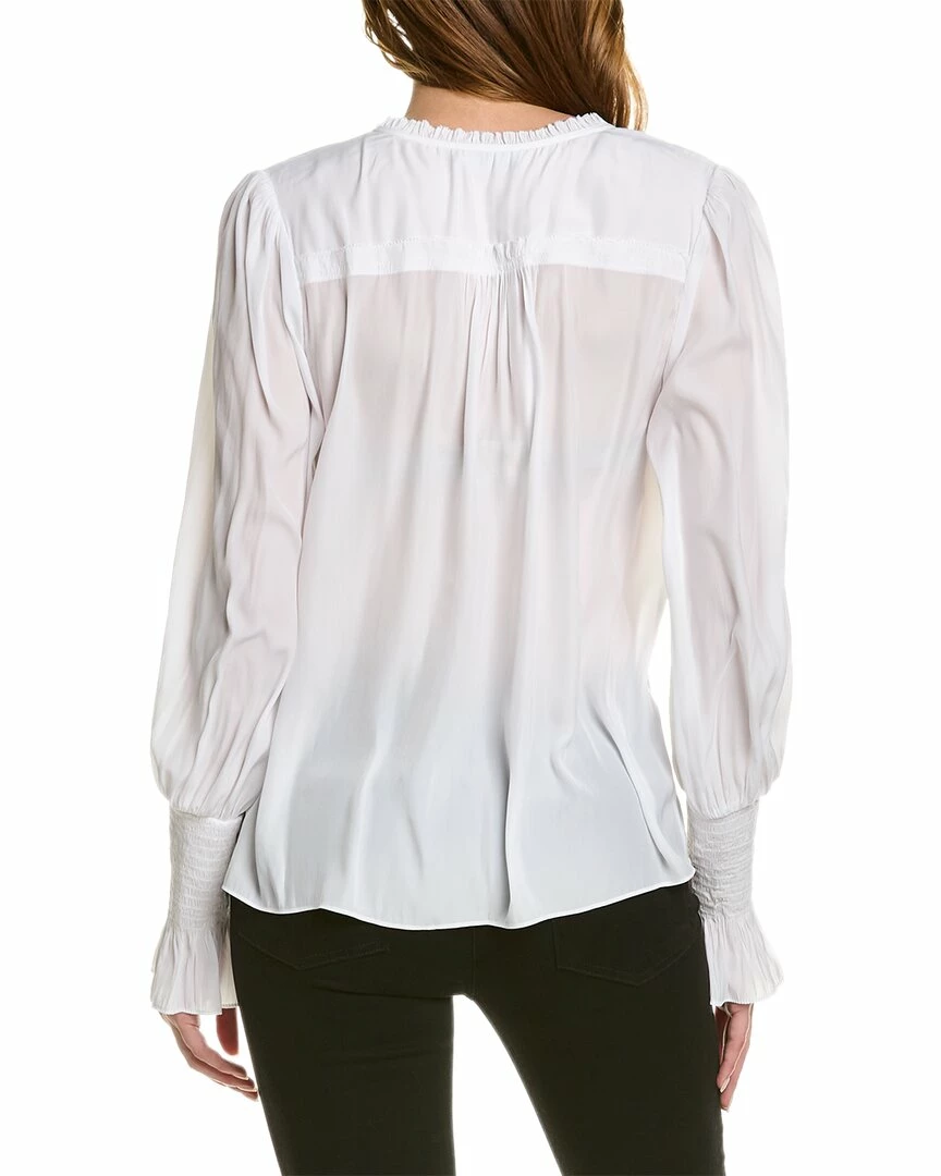 - Imanke Top In White With Mock Collar, Ruffle Trim, And Smocked Cuffs