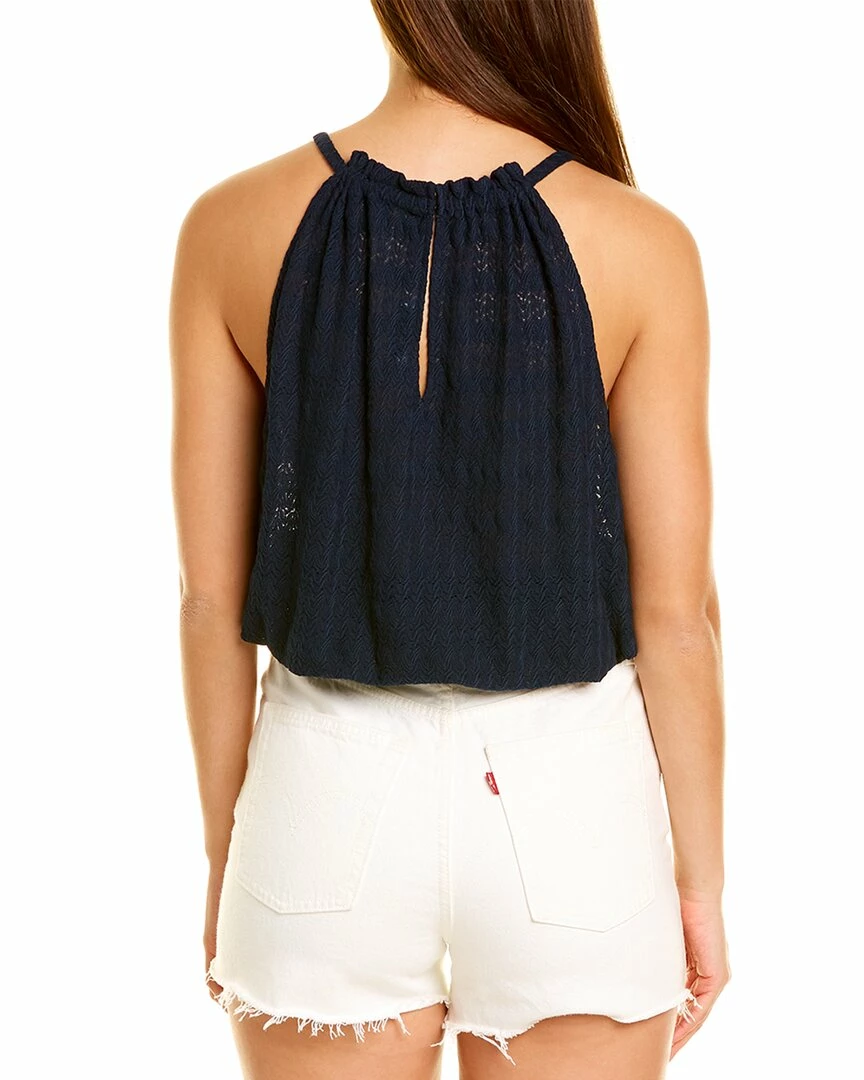 - Noah Top In Navy With Lace Knit Design, Halter Neck, And Elasticized Hem