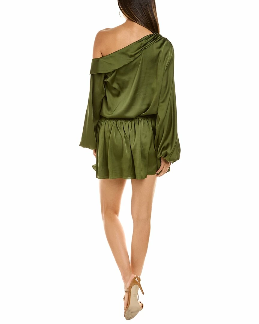 - Timothy Dress In Olive With Foldover Neckline, Asymmetric Blouson Sleeves, Elasticized Cuffs, And Smocked Waist